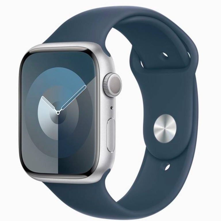 apple watch s9 45mm mr9e3ll/a silver aluminum storm blue sb m/l