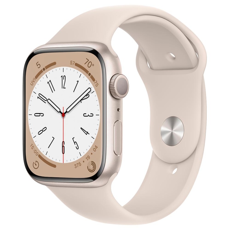 apple watch s8 mnuq3ll/a 45mm / m-l / gps / aluminium sport band - starlight