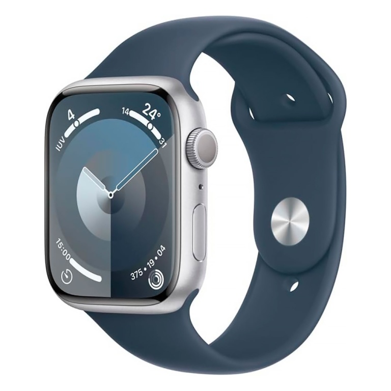 apple watch series 9 mr9e3lw/a caixa aluminio 45mm prata - esportiva azul m/l