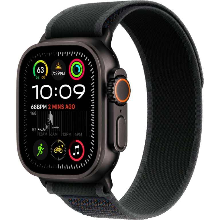 apple watch ultra 2 mx4v3/lw - bluetooth - wi-fi + e-sim - 49mm - gps - black titanium/black trail loop