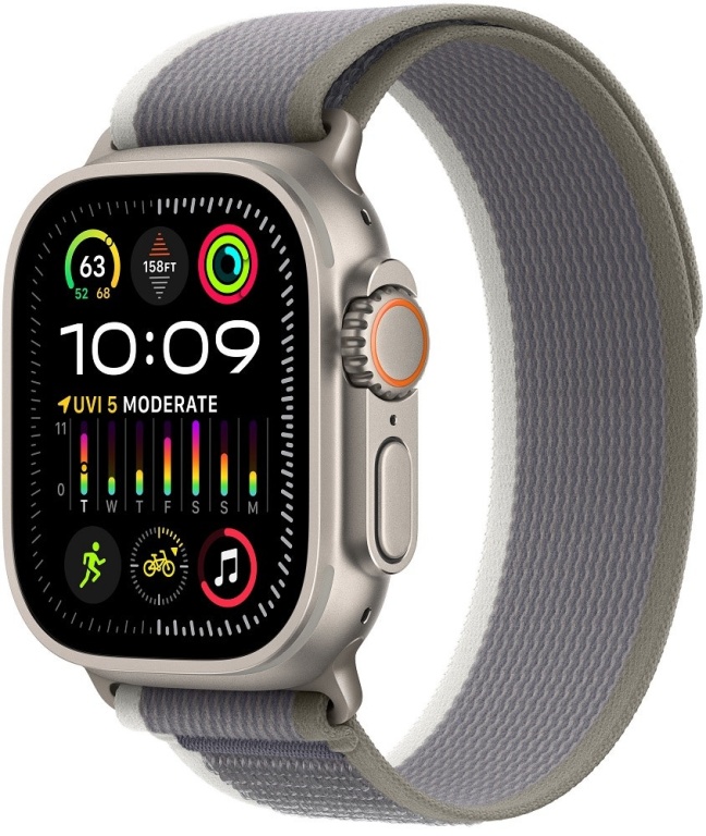 apple watch ultra 2 gps+cellular 49mm caixa titânio pulseira s/m green gray t.loop mrf33lw