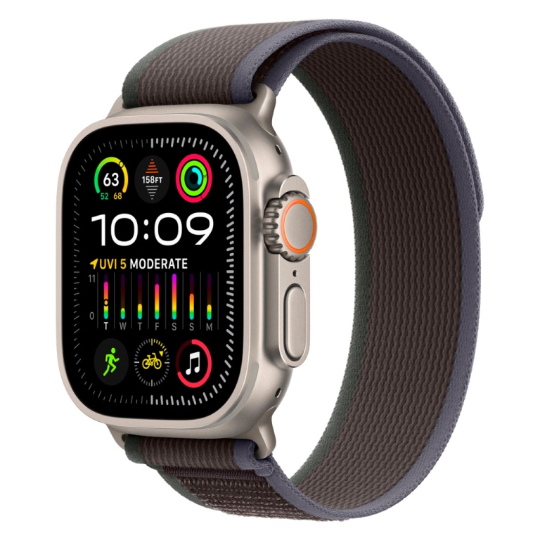 apple watch ultra 2 mrf63lz/a celular + gps caixa titanio 49mm - loop trail azul preto