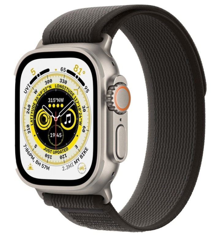 apple watch ultra cel+gps/ oxímetro 49mm/ mqf43ll/a -titanium black gray trail loop s/ m