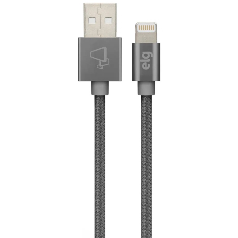 cabo elg c810by - usb/lightning - 1 metro - nylon trançado - cinza