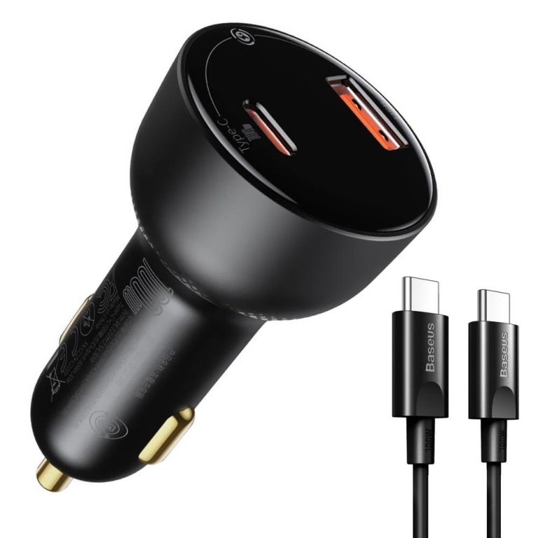 carregador de bateria veicular baseus tzcczx-01 100w / usb / type-c - preto + cabo type-c / type-c
