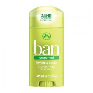 | O Ban Unscented é um desodorante antitranspirante de fabricação canadense com poderosos ingredientes antitranspirantes. |