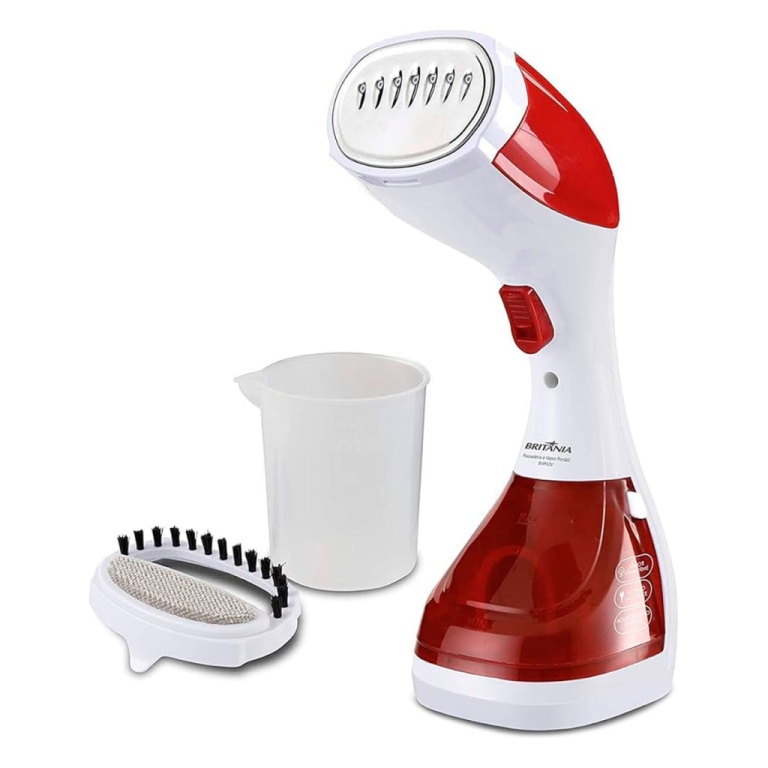 passadeira a vapor britânia bvp02v pet - 1100w - tanque 180ml - 220v - branco e vermelho