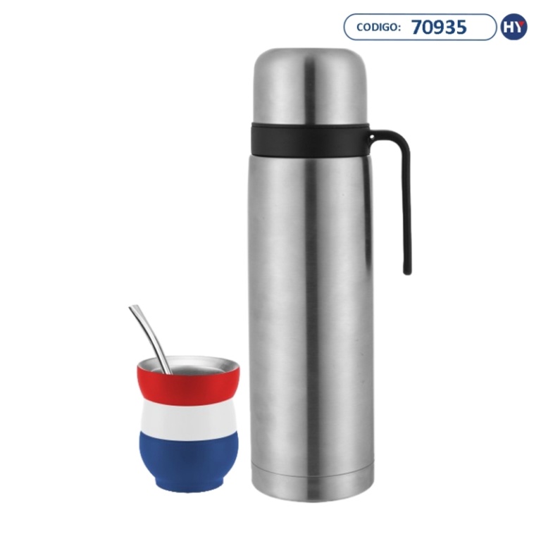 O kit de mate é um tesouro para os amantes dessa infusão milenar. Com uma garrafa térmica de aço inoxidável de 1 litro, o mate é mantido em sua temperatura perfeita por horas.