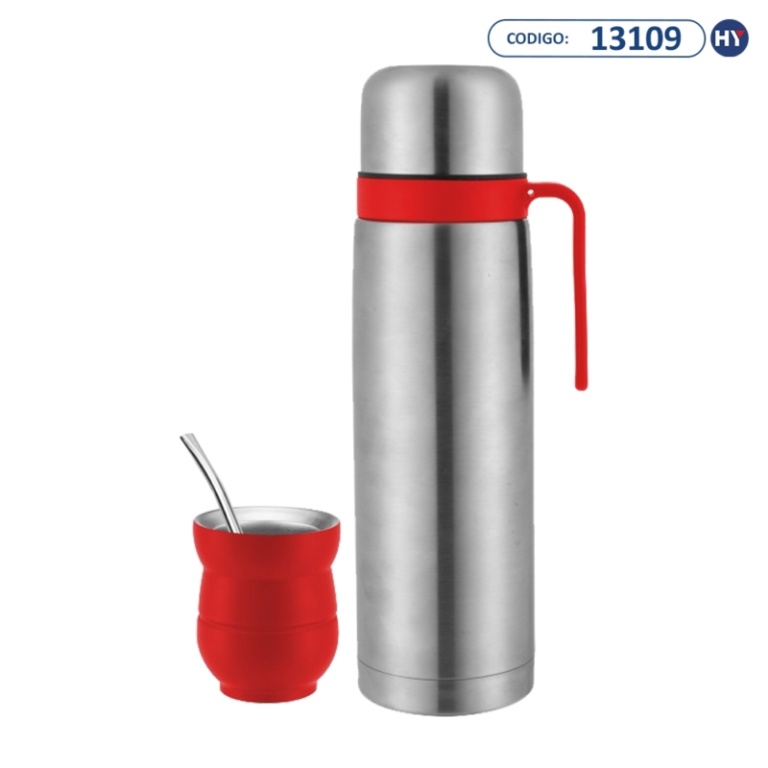 garrafa térmica inox megastar tm12r de 1 litro + cuia e bomba