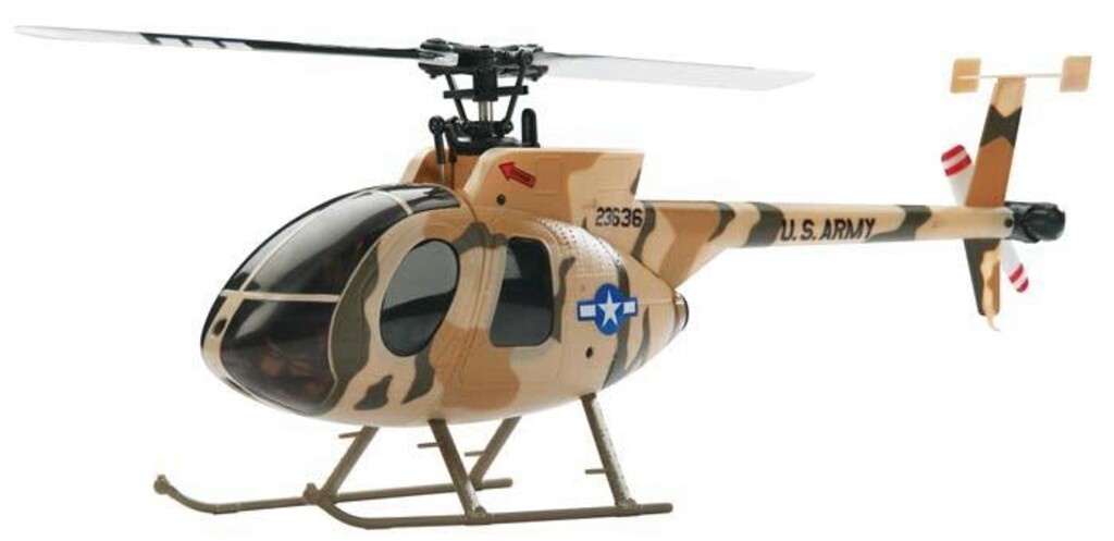 | Helicóptero MD-530 FP, rádio de 2,4 GHz, giroscópio, bateria LiPo, carregador, quatro células AA, chave de fenda e manual de instruções |