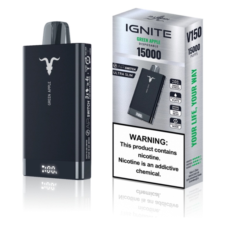 ignite v150 15000 puffs green apple