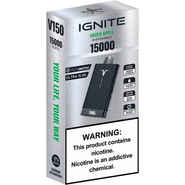 O Pod Descartável Ignite V150 15000 Puffs permite ajustar a potência para se adequar às preferências do usuário, proporcionando uma experiência de vaporização personalizada.