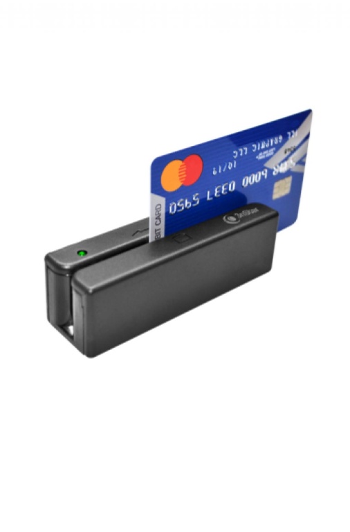 O leitor de cartão magnético de três trilhas pode ser usado para passar e ler a tarja magnética no verso de um cartão de crédito ou débito ou outro cartão com tarja magnética.