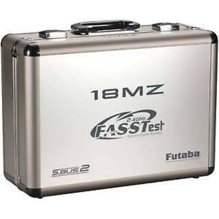 Forrado com espuma com recortes que se ajustam exatamente ao contorno do transmissor 18MZ, além de recortes extras para segurar carregador, receptor e outros itens Lindo acabamento em alumínio com cantos arredondados, alça de transporte e tampa com trava com duas chaves |