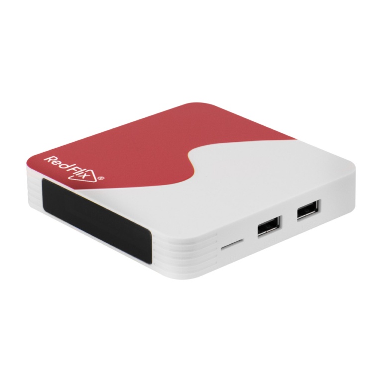 | Aproveite uma experiência única com o receptor FTA Redflix Red 4K Wifi em branco e vermelho. |