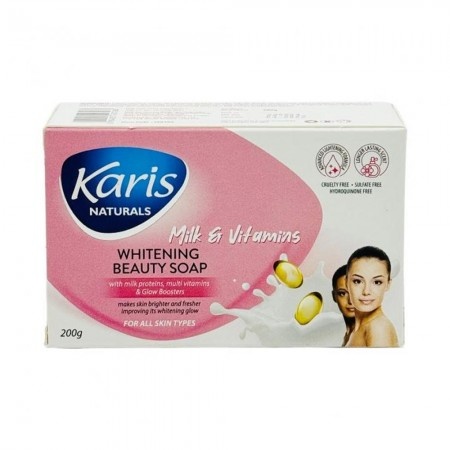 | Sabonete Karis Naturals Milk and Vitamins da Karis com proteínas do leite, vitaminas múltiplas e intensificador de brilho. |