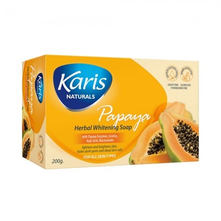 | O Sabonete de Papaya Herbal Whitening da não apenas limpa a sujeira profundamente incrustada, mas também reduz manchas e pontos escuros. |