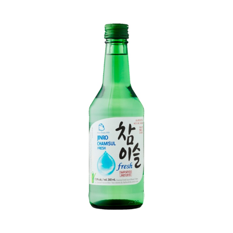 | Chamisul Fresh Soju é uma bebida destilada neutra de arroz. |