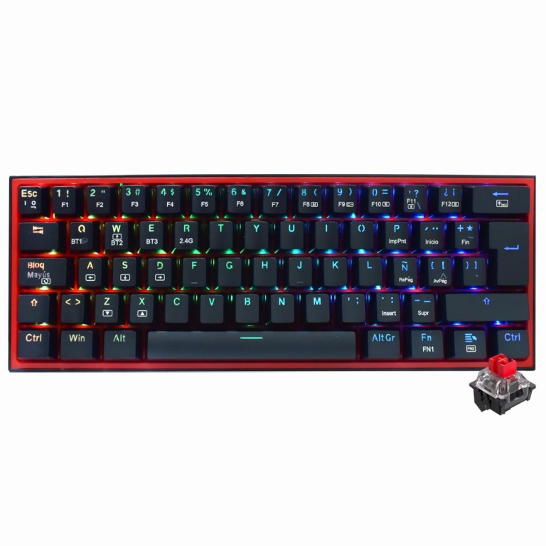 teclado gamer mecanico redragon k616-rgb fizz pro mini wireless / rgb / red / espanhol - preto