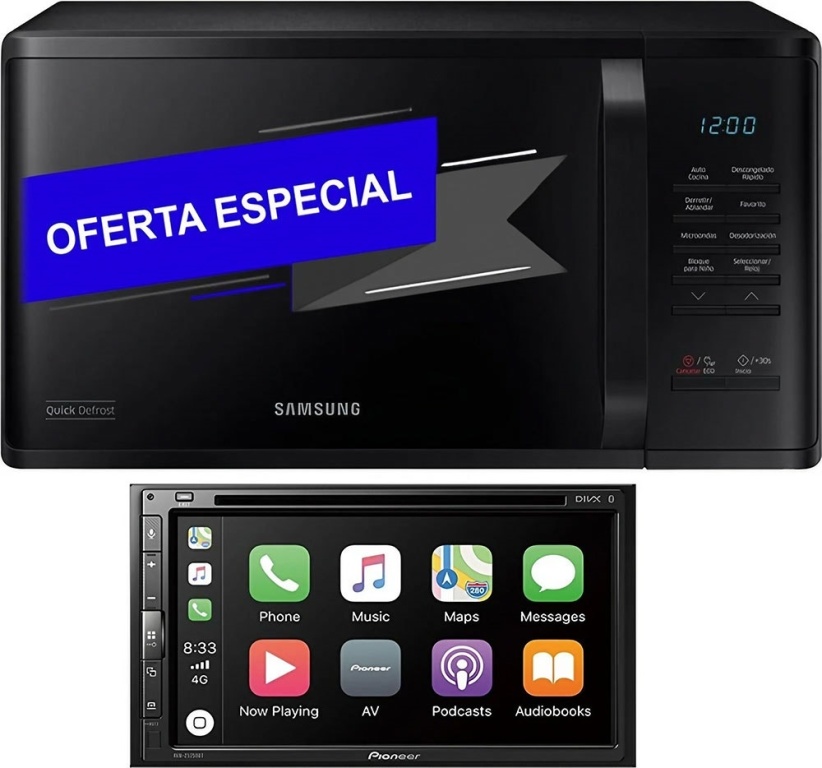kit toca dvd pioneer avh-z5250tv 6.8" + microondas samsumg ms23k3513ak 23l