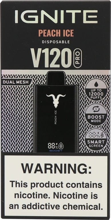 vape descartável ignite v120 pro peach ice 12000 puffs dual mesh black