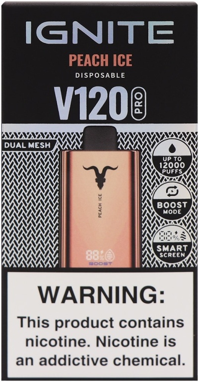 vape descartável ignite v120 pro peach ice 12000 puffs dual mesh rose gold