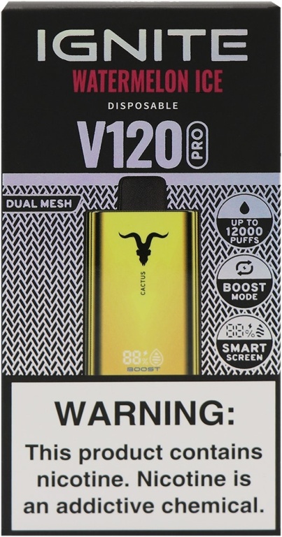 vape descartável ignite v120 pro watermelon ice 12000 puffs dual mesh gold