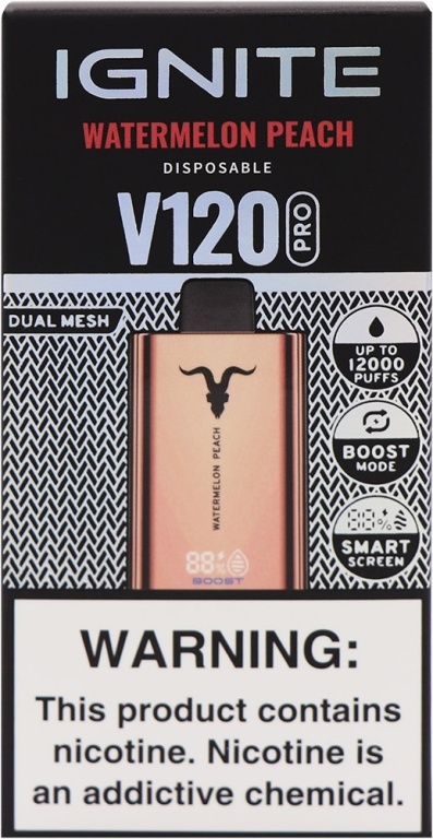 vape descartável ignite v120 pro watermelon peach 12000 puffs dual mesh rose gold