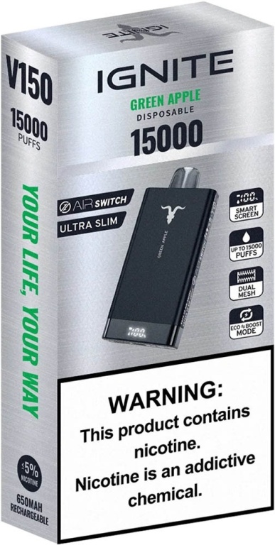 vape descartável ignite v150 green apple 15000 puffs