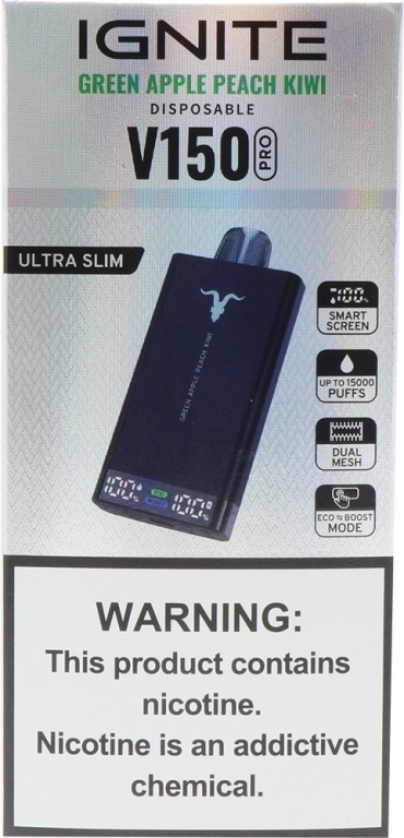 vape descartável ignite v150 pro green apple peach kiwi 15000 puffs
