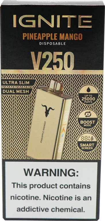 Vape Descartável Ignite V250 Pineapple Mango 25000 Puffs Gold