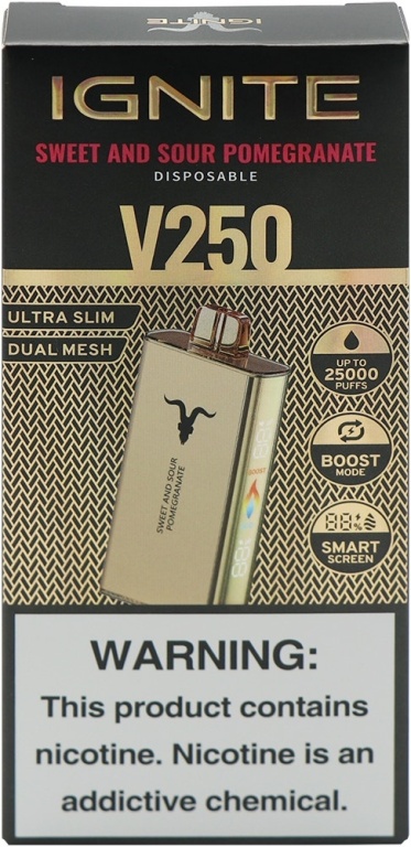 vape descartável ignite v250 sweet and sour pomegranate 25000 puffs gold