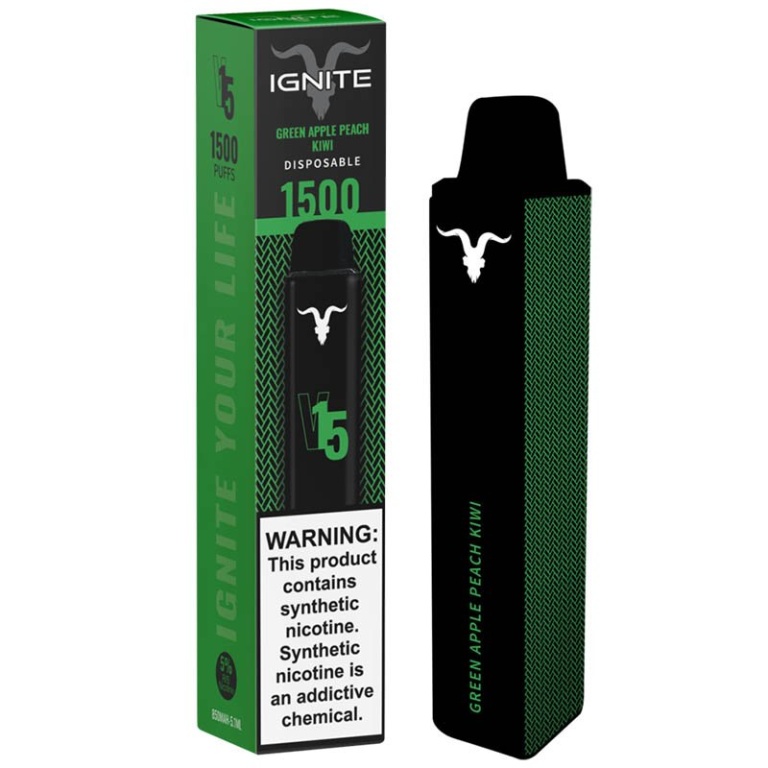 vaper descartavel ignite v15 green apple peach kiwi 50mg 1500puffs