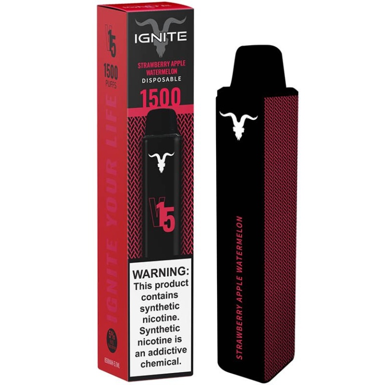 vaper descartavel ignite v15 strawberry apple watermelon 50mg 1500puffs