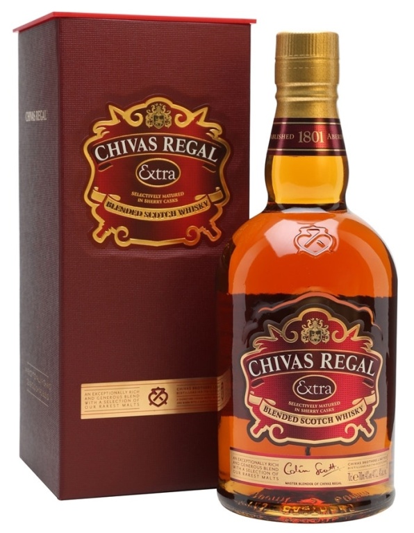 | Chivas regal extra é o novo membro da família chivas regals. projetado por colin scott, um membro da terceira geração de uma família de profissionais de whisky escocês, chivas regal extra satisfaz os desejos dos mais experientes consumidores de whisky. |