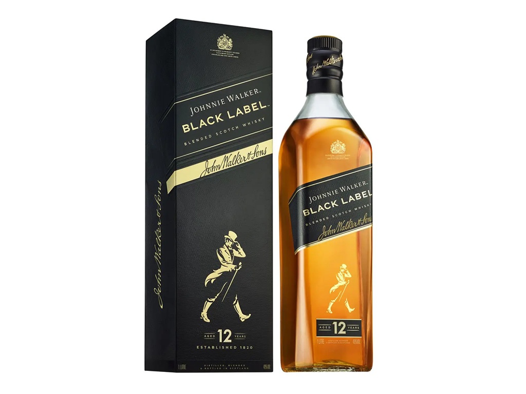 | Johnnie Walker Black Label é um destilado alcoólico de cevada germinada e grãos de cereais produzidos, combinados e engarrafados na Escócia. |