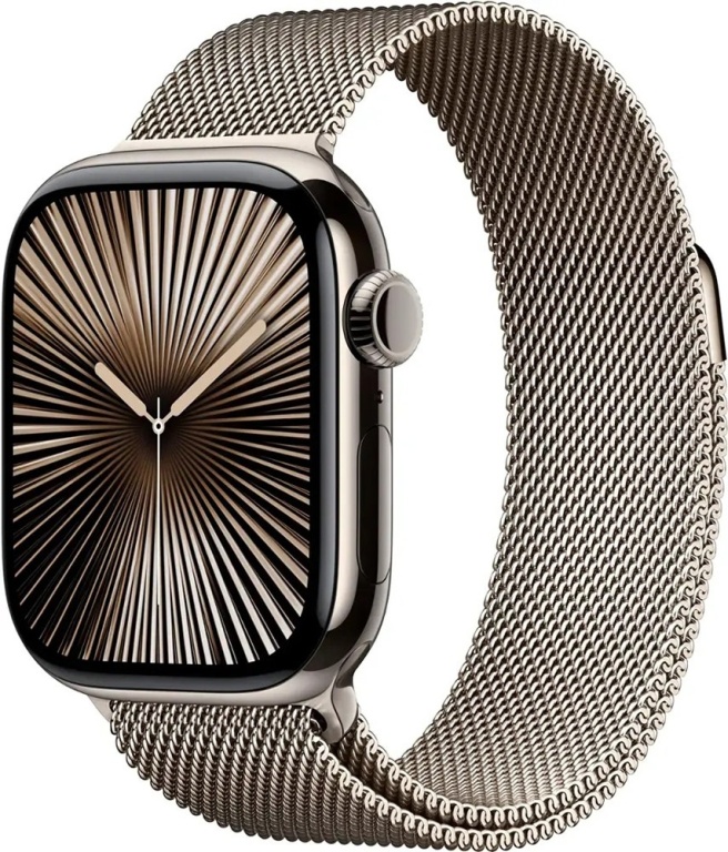 apple watch s10 (gps+cell) caixa titânio natural 42mm pulseira milanese loop mwxf3lw