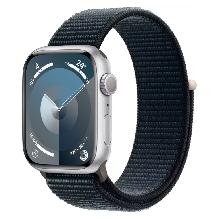 apple watch series 9 mr9r3cl/a caixa aluminio 45mm prata - loop esportiva meia noite