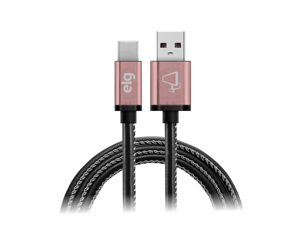 Cabo Elg Sknc10bk - Usb/tipo C - 1 Metro - Tecido Natural - Preto E Rosa