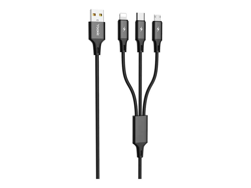 Cabo Yookie Ec06 - 3 Em 1 - Usb/usb-c/lightning/micro Usb - 1 Metro - Preto