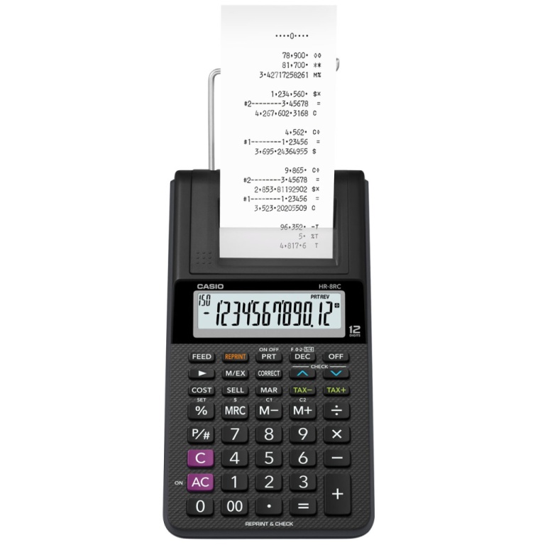 calculadora casio hr-8rc-bk - 12 dígitos - com impressão - preto