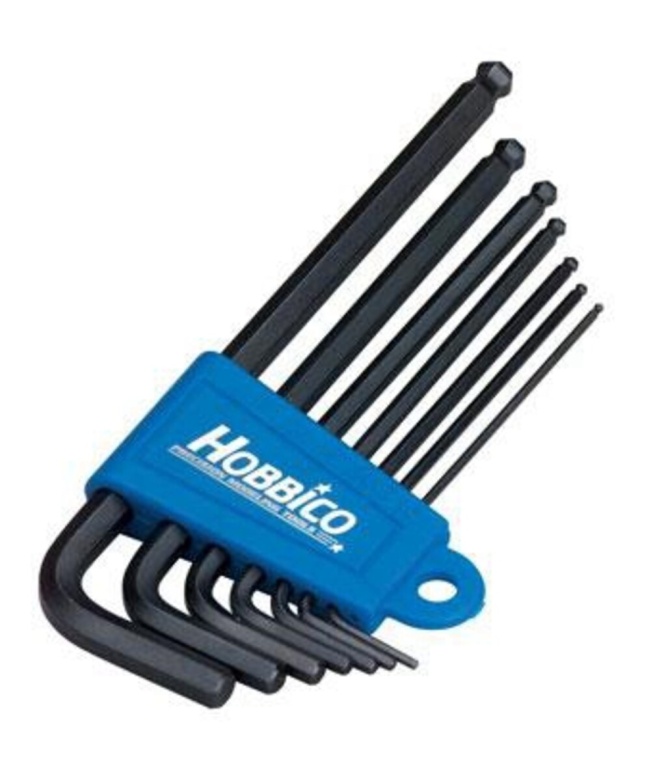 | Oito chaves: 1,5 mm, 2 mm, 2,5 mm, 3 mm, 4 mm, 5 mm, 6 mm |