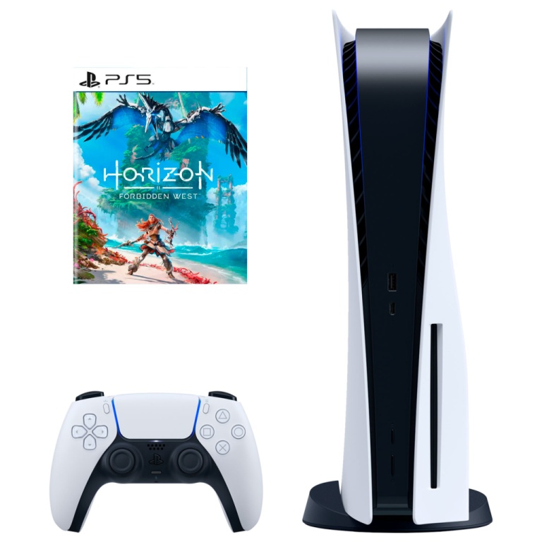 Control - Cable HDMI - Cable USB-C - Cable de Alimentación - Base - Voucher de Juego Horizon Forbidden West