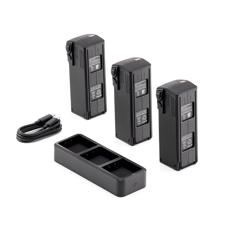| O kit de bateria DJI Mavic 3 Enterprise Series inclui três baterias de voo inteligentes e um hub de carregamento de bateria DJI Mavic 3 (100 W) para atender às necessidades de operações de longa duração. |