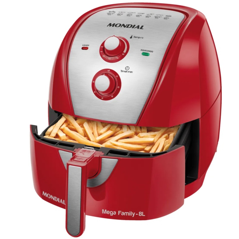 | Características Cesta antiaderente e fácil de limpar - Aviso sonoro e desligamento automático - Controle de temperatura e temporizador |