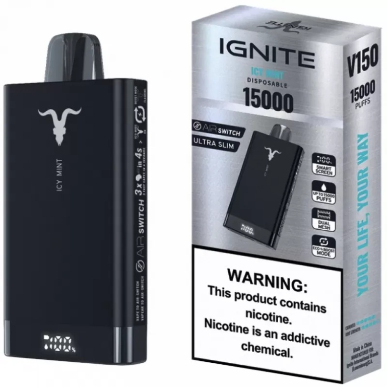 O Pod Descartável Ignite V150 15000 Puffs permite ajustar a potência para se adequar às preferências do usuário, proporcionando uma experiência de vaporização personalizada.