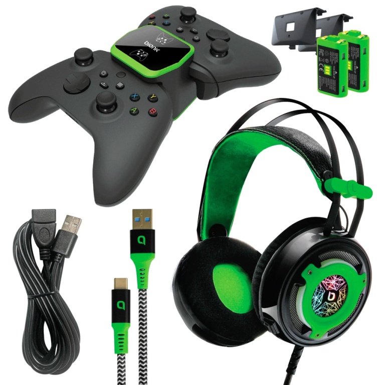 | Conteúdo da embalagem 2 Carregadores sem fio | 2 Baterias | Headset | Cabo carregador |