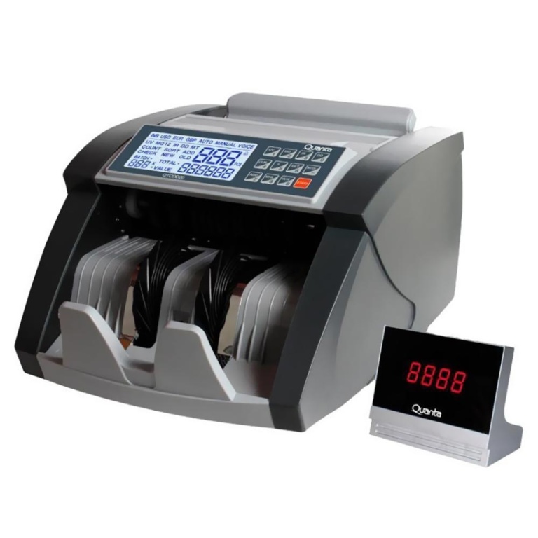 | Funções Detecta notas falsas com luz ultravioleta e tinta magnética - Detecta notas danificadas - A cor da tela fica vermelha quando detecta notas falsas - Identificação do tipo de moeda |