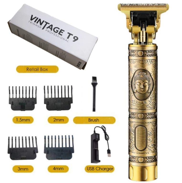 máquina de cortar cabelo e barba acabamento vintage t9
