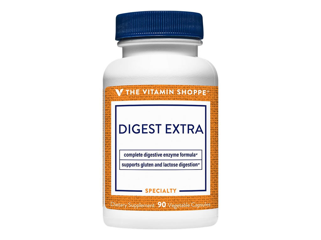 | As cápsulas Digest Extra da marca Vitamin Shoppe® contêm uma variedade de enzimas digestivas que ajudam a tornar a digestão do glúten e da lactose um pouco mais fácil em seu corpo. |